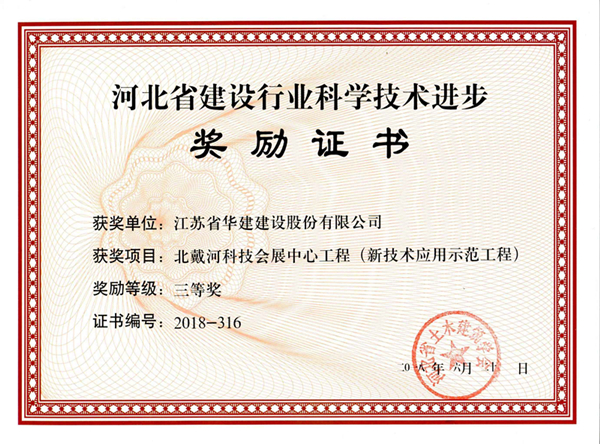 北京公司首獲省級建設行業科技進步獎 時間:2018-08-09 4049 近日,由北京分公司承建的秦皇島經濟技術開發區投資服務中心(新技術應用示范工程)、北戴河科技會展中心工程(新技術應用示范工程)兩項工程被河北省土木建筑學會表彰為河北省建設行業科學技術進步獎三等獎,這是北京分公司首次獲得該獎項。