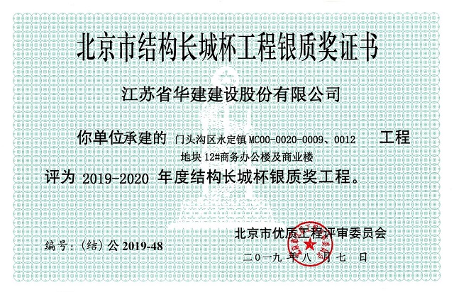 公司再獲三項省級優質結構工程 時間:2019-09-19 3214 近日,北京市工程建設質量管理協會公布了2019-2020年度第一批北京市建筑結構長城杯獲獎工程名單,由我司承建的門頭溝區永定鎮MC00-0020-0009、0012地塊6#住宅樓及商業樓項目和門頭溝區永定鎮MC00-0020-0009、0012地塊12#商務辦公樓及商業樓項目均被評為2019-2020年度結構長城杯銀質獎工程。 另外,由我司承建的楊柳郡柳園5#、6#、7#樓及地下室工程被評定為2019年廣西建設工程優質結構獎。