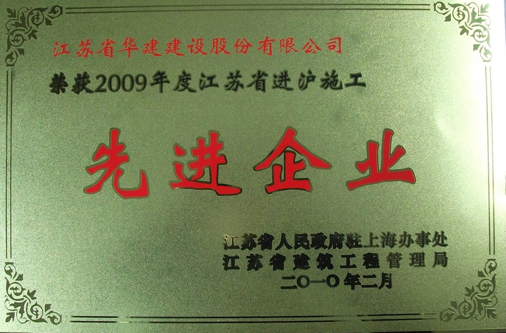 公司七獲“江蘇省進滬施工先進企業”稱號 時間:2010-03-29 6571 3月10日,在江蘇省政府駐滬辦、江蘇省建管局召開的2009年度江蘇進滬施工總結表彰暨迎世博動員大會上,江蘇華建被表彰為“江蘇省進滬施工先進企業”,這已是第七次獲次殊榮;表彰會上, 上海洛克外灘源總承包項目部、中船臨港二期加工綜合樓項目部被評為優秀項目部,另有3人被評為優秀項目經理,各有1人被評為安全管理先進個人、質量管理先進個人、經營管理先進個人、財務管理先進個人,有2人被評為綠色施工管理先進個人。