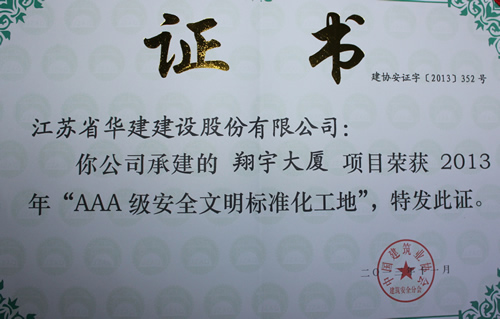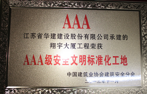 日前,由上海區域公司蘇北分公司承建的淮安翔宇大廈被中國建筑業協會評為2013年全國“AAA級安全文明標準化工地”,這是國內安全文明施工最高獎項,旨在規范建筑施工安全生產,保障建筑職工安全與健康,提高施工現場安全管理水平。這是上海區域公司第一次獲此殊榮,也是江蘇華建第8項全國3A級安全文明標準化工地,該工程還被評為2012年度江蘇省建筑施工文明工地、2013年度江蘇省建筑業新技術應用示范工程。
