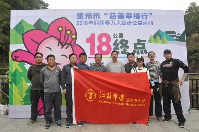 本次徒步活動在景色秀美的惠州紅花湖景區舉行,全程18公里,公司全體人員從紅花湖景區入口處出發,沿著紅花湖綠道一路前行。郁郁蔥蔥的高榜山和平滑如鏡的紅花湖合成一幅優美的畫卷映入眼簾,讓人神清氣爽。徒步過程中,大家爭先恐后,你追我趕,不甘落后,3小時內走完全程,無一人掉隊。當日,正逢惠州市慈善幸福行2016年迎新春萬人徒步公益活動拉開序幕,此次公益活動由惠州市民政局主辦、市慈善總會承辦,將慈善和健康元素融合在一起,公司員工紛紛表示元旦期間將踴躍參加,為公益奉獻自己的一份力量,進一步豐富公司迎新年活動的內涵。