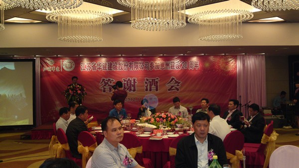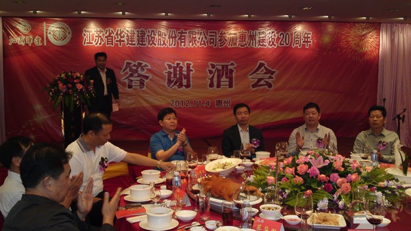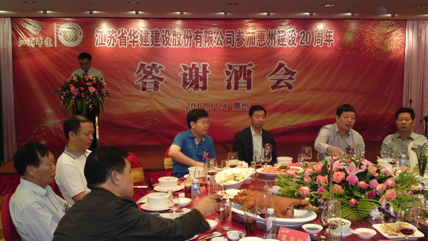 公司在惠隆重召開參加惠州建設20周年慶典暨答謝酒會 時間:2012-11-06 4576 公司在惠隆重召開 參加惠州建設20周年慶典暨答謝酒會 11月4日,公司在惠州凱賓斯基酒店王子飯店隆重召開參加惠州建設20周年慶典暨答謝酒會,公司副董事長、總經理宗有農主持酒會并作開場致辭。惠州市有關政府部門、部分合作方企業的負責人,華建聯盟成員單位負責人,公司董事、監事和高管等130余人出席慶典。惠州公司總經理華恒榮介紹了公司參加惠州建設20年的有關情況。惠州市工商聯主席、公司戰略合作伙伴恒宇實業集團公司董事長楊滿芳代表合作方發言,惠州市住房和城鄉規劃建設局副局長陳訓政代表政府主管部門致辭,分別對江蘇華建進駐惠州施工、參加惠州建設20周年表示祝賀。公司董事長陸金龍代表公司總部對惠州市有關政府部門、相關合作方和社會各界人士給予公司的關心和支持表示誠摯的感謝,并表達了進一步加大支持力度、加強戰略合作、加快科學發展的意愿。 (峰年 文/圖)