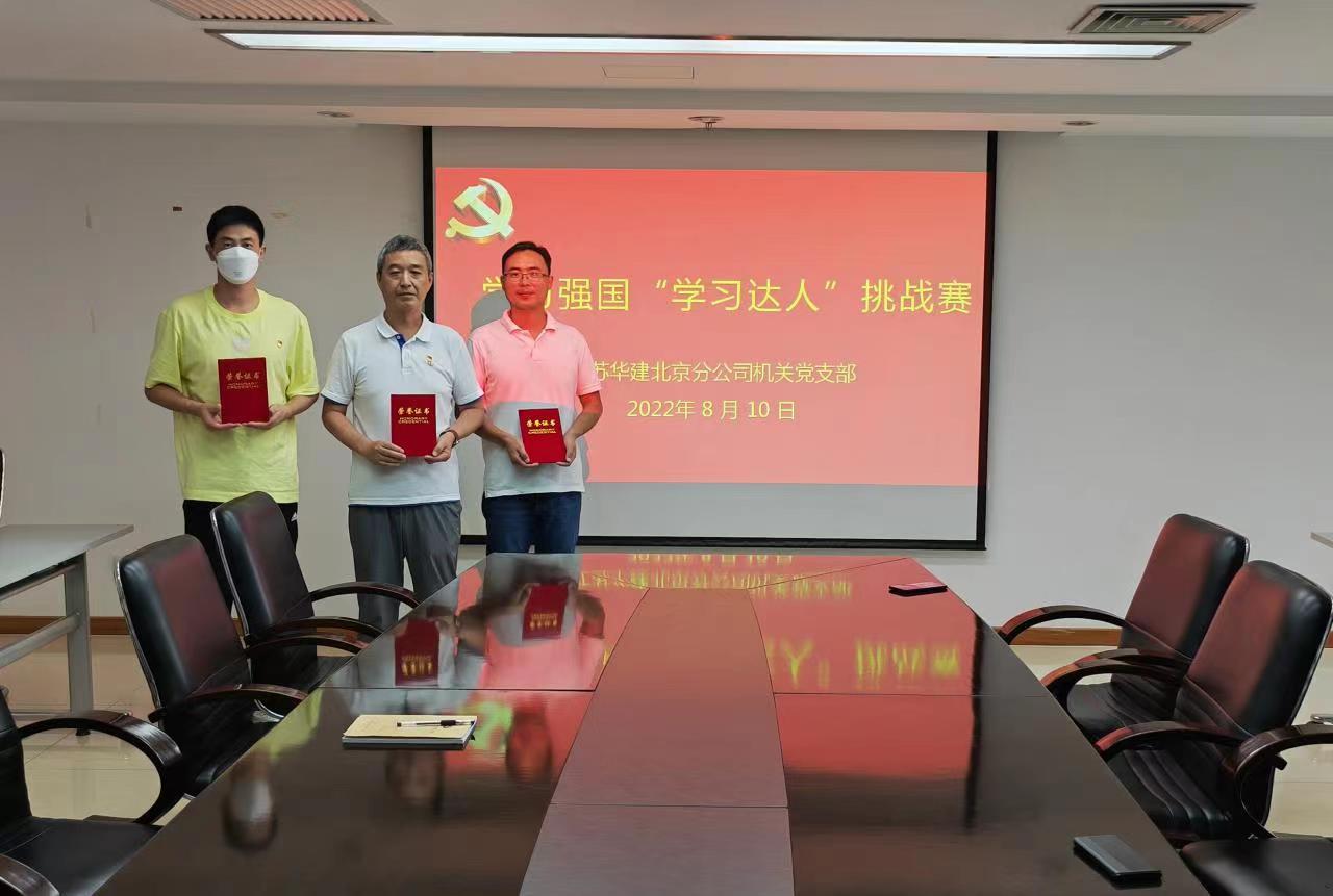為進一步用好“學習強國”平臺,推動系統黨員干部群眾不斷深入學習貫徹習近平新時代中國特色社會主義思想,結合上級黨組織要求,北京分公司機關黨支部于8月10日組織全體在京黨員開展線下學習強國“學習達人”挑戰賽活動。