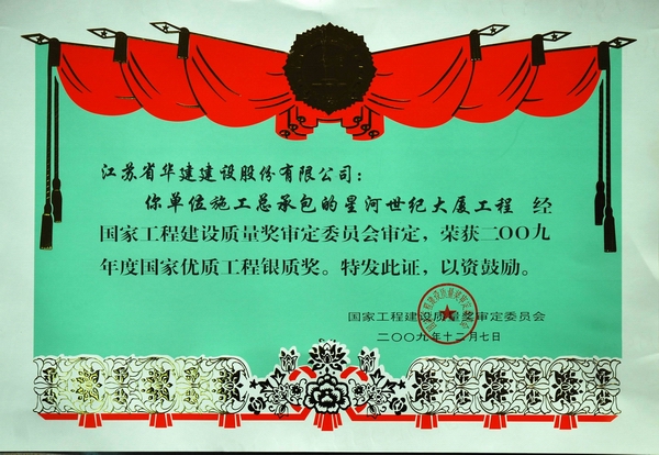 該工程先后榮獲2006年度“深圳市安全生產(chǎn)文明施工優(yōu)良工地”、2007年度深圳市優(yōu)質(zhì)工程“金牛獎(jiǎng)”第一名、2007年度廣東省優(yōu)良樣板工程獎(jiǎng)、2007年度江蘇省“揚(yáng)子杯”省外優(yōu)質(zhì)工程獎(jiǎng),2009年12月被評(píng)為2009年度國(guó)家優(yōu)質(zhì)工程銀質(zhì)獎(jiǎng)。