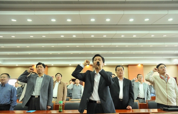 揚州建工控股系統組織黨員干部到揚州市警示教育基地參觀接受教育 時間:2011-05-27 5173 5月27日上午,建工控股公司機關、華建總部黨員干部和揚建、揚安、華宏、中專校等單位領導班子成員及黨務、紀檢、財務、行政等部門中層負責人共80多人,到揚州市警示教育基地參觀接受教育,大家觀看了預防腐敗警示教育宣傳圖片、電視專題片和違法犯罪人員現身說法錄像。建控公司黨委書記、董事長陸金龍在參觀結束前作了誡勉講話,指出這次建控系統組織黨員干部開展廉潔自律警示教育活動,是加強干部能力作風建設的一項重要內容。一系列反面案例帶來的教訓和思考,令大家深受觸動。見不賢而內自省。建控系統廣大黨員干部要從確立正確的角色定位、樹立合理的人生追求、建立完善的制度保障、打造健康的從業環境四個方面入手,進一步加強廉政教育、樹立自律意識、保持清廉本色,從而提高干事業、謀發展的能力和水平,為創建“三個揚州”、建設和諧社會作出應有貢獻。最后,陸金龍同志帶領大家集體進行了莊嚴的廉政承諾宣誓。