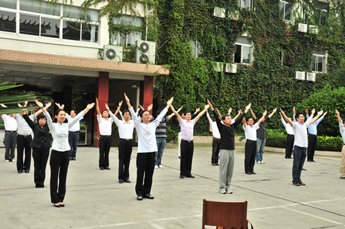 總部組織員工練習廣播體操