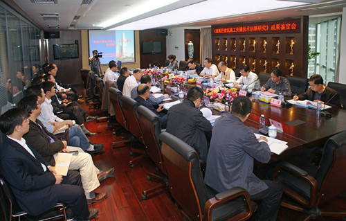 成果鑒定會(huì)由江蘇省住建廳組織召開(kāi),省住建廳科研處王華處長(zhǎng)主持,由上海建工集團(tuán)葉可明院士、江蘇建科院繆昌文院士、南京工業(yè)大學(xué)劉偉慶副校長(zhǎng)(教授)、東南大學(xué)郭正興教授、南通四建集團(tuán)耿裕華董事長(zhǎng)(教授級(jí)高工)、中國(guó)華西劉新玉總工(教授級(jí)高工)、深圳建設(shè)集團(tuán)肖營(yíng)總工(教授級(jí)高工)等組成鑒定委員會(huì)。鑒定委員會(huì)在聽(tīng)取了課題組的技術(shù)研究報(bào)告,審查了相關(guān)資料,并經(jīng)質(zhì)詢、討論后一致認(rèn)為:江蘇省華建建設(shè)股份有限公司結(jié)合19項(xiàng)高度為150~300米的超高層框筒組合結(jié)構(gòu)工程的施工實(shí)踐,針對(duì)新、大、高、特的系列施工難題開(kāi)展的關(guān)鍵施工技術(shù)研究,取得了多項(xiàng)創(chuàng)新研究成果。如發(fā)明了以定型無(wú)攬大角度回轉(zhuǎn)式拔桿塔吊拆除機(jī)械為代表的裝置,解決了超高層建筑施工垂直運(yùn)輸機(jī)械的關(guān)鍵問(wèn)題;形成了“預(yù)置螺母式型鋼混凝土組合柱模板固定裝置的施工方法”和“高空澆筑鋼柱內(nèi)混凝土操作平臺(tái)架”等發(fā)明專利及型鋼混凝土組合柱箍筋半裝配式安裝技術(shù),解決了超高層框筒組合結(jié)構(gòu)鋼筋混凝土工程施工技術(shù)難題;針對(duì)超高層施工的施工期間外周圍護(hù)安全問(wèn)題,研制了新型裝配式懸挑安全防護(hù)棚,為施工期間圍護(hù)結(jié)構(gòu)安全提供了有力保證;開(kāi)發(fā)了經(jīng)濟(jì)實(shí)用的外鋼模隨掛架周轉(zhuǎn)等專項(xiàng)關(guān)鍵施工技術(shù),為快速安全施工提高工程質(zhì)量、施工安全提供了有力保證。多年來(lái),公司獲得多項(xiàng)國(guó)家級(jí)質(zhì)量、安全、項(xiàng)目管理、新技術(shù)應(yīng)用示范工程獎(jiǎng)。超高層框筒組合結(jié)構(gòu)工程施工的系列技術(shù)創(chuàng)新研究,形成了經(jīng)濟(jì)實(shí)用的成套施工技術(shù),取得了良好的社會(huì)效益和經(jīng)濟(jì)效益,為國(guó)內(nèi)同行提供了同類工程施工的寶貴經(jīng)驗(yàn)。鑒定委員會(huì)認(rèn)為,該項(xiàng)技術(shù)創(chuàng)新研究成果達(dá)到國(guó)際先進(jìn)水平,一致同意通過(guò)鑒定。