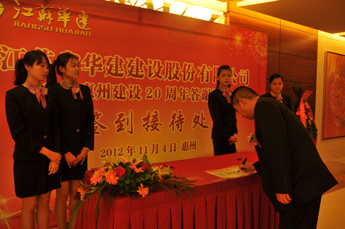 11月4日,公司在惠州隆重舉辦參加惠州建設(shè)20周年答謝酒會(huì),副董事長、總經(jīng)理宗有農(nóng)主持并作開場致辭。惠州市有關(guān)政府部門、部分合作方企業(yè)的負(fù)責(zé)人,華建聯(lián)盟成員單位負(fù)責(zé)人,公司董事、監(jiān)事和高管等130余人出席酒會(huì)。惠州公司總經(jīng)理華恒榮介紹了公司參加惠州建設(shè)二十年的有關(guān)情況。惠州市工商聯(lián)主席、恒宇實(shí)業(yè)發(fā)展公司董事長楊滿芳代表合作方發(fā)言,惠州市住房和城鄉(xiāng)規(guī)劃建設(shè)局副局長陳訓(xùn)政代表政府主管部門致辭,分別對江蘇華建進(jìn)惠施工二十周年表示祝賀。公司董事長陸金龍代表總部對惠州市有關(guān)政府部門、相關(guān)合作方和社會(huì)各界人士給予公司的關(guān)心和支持表示誠摯的感謝,并表達(dá)了進(jìn)一步加大支持力度、加強(qiáng)戰(zhàn)略合作、加快科學(xué)發(fā)展的意愿。