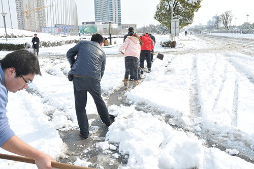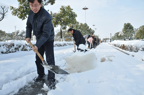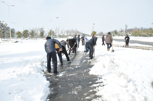 218日至19日凌晨,揚州出現低溫降雪災害天氣,降下了多年罕見的一場大雪,壓垮樹枝和部分房屋設施,并造成道路交通不便。19日清晨,公司響應市政府號召,組織20余名員工上路清掃積雪,公司領導吳士茂、錢啟明親自參加,與大家共同會戰2個多小時,完成了清掃任務。