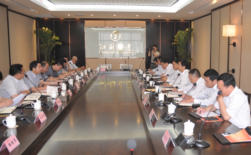 考察團一行參觀了公司企業展示中心,隨后,雙方在會議室進行了全面深入的交流。宮長義董事長首先高度評價了江蘇華建近年來的發展成果,并闡述了此行考察交流的目的和主題。陸董事長對宮董事長一行來訪表示熱烈歡迎,他向考察團簡要介紹了公司發展歷程、質量聲譽、市場規模、多元發展等方面的情況,并著重就分配機制改革、市場開拓、投融資等方面和大家進行坦誠而深入地交流與探討。此后,雙方還表達了開展戰略合作的愿望,以期互通有無,攜手共進,共促發展。