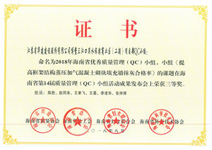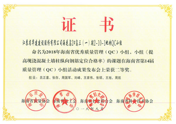 海南公司五項QC成果獲得省級表彰 時間:2018-09-03 3341 日前,海南省質量協會公布了2018年海南省“優秀質量管理(QC)小組”活動成果評比結果,海南分公司共有5項成果受到表彰。其中,海花島2#島三(一)期2-10-1地塊QC小組榮獲二等獎,博鰲三江口濱水旅游商業區(二期)項目部QC小組、三亞婦幼保健院整體搬遷(新址)建設項目QC小組、恒大海上帝景QC小組、華盛中央公園國際公寓QC小組榮獲三等獎。 (技術質量處)