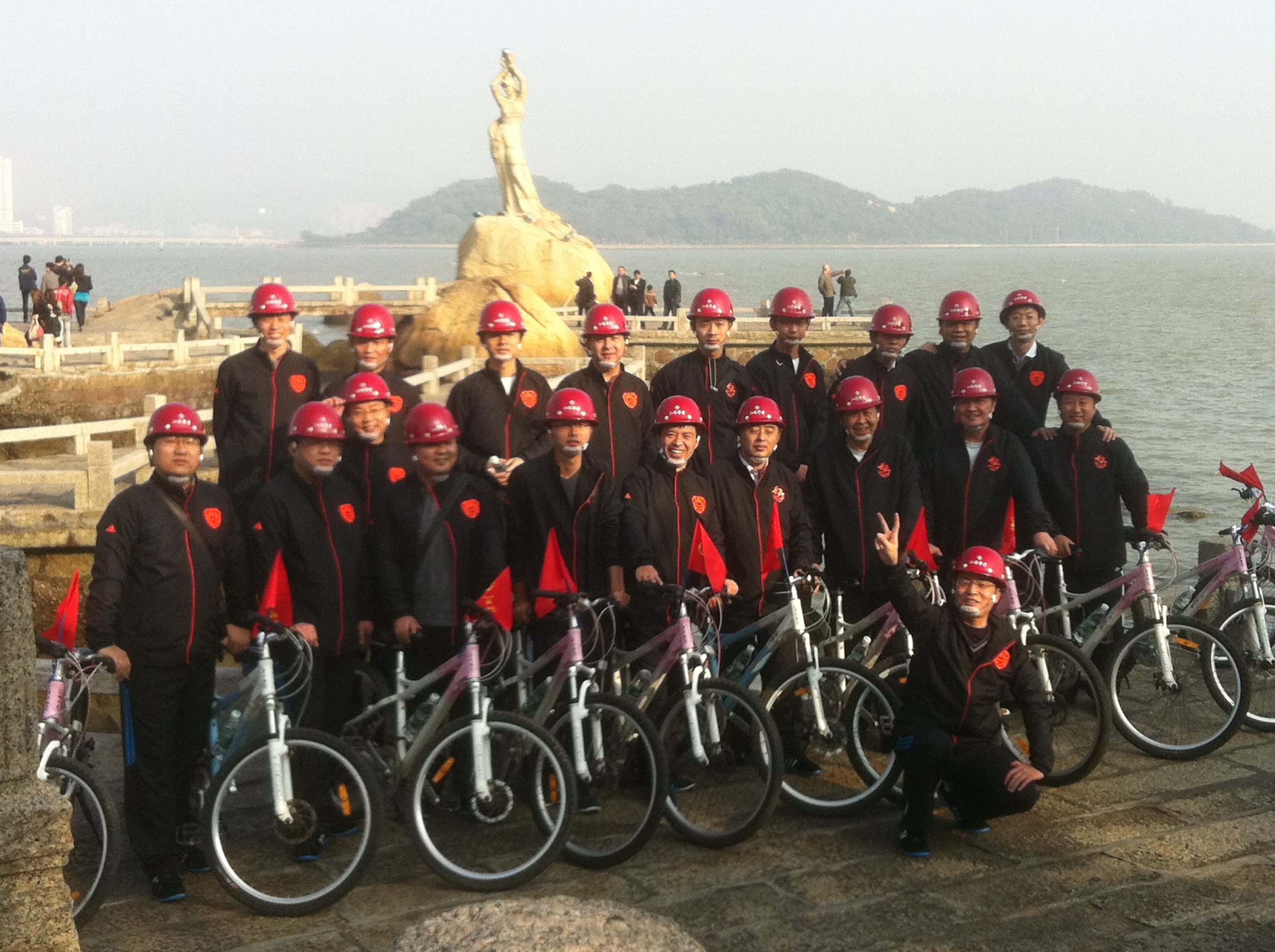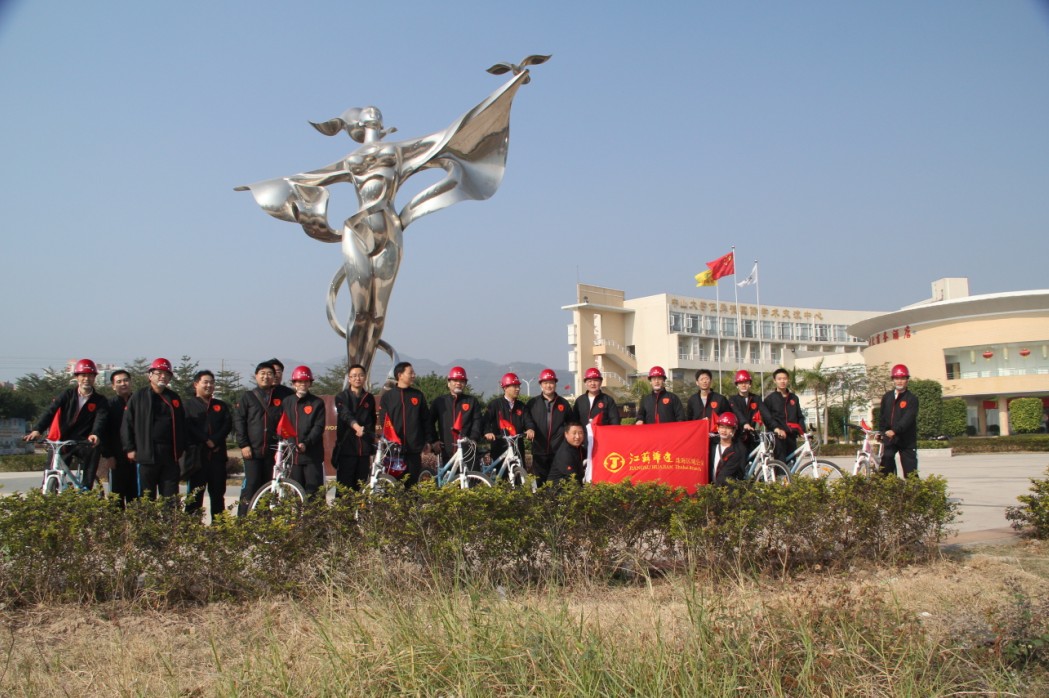 2012年1月1日上午9時,珠海區(qū)域公司全體員工在公司經(jīng)理室的帶領(lǐng)下,統(tǒng)一著裝,頭戴印有江蘇華建標(biāo)識的安全頭盔,騎著統(tǒng)一插有江蘇華建小紅旗的自行車,沿著珠海海濱綠道開展騎自行車迎新年活動。騎行的起點是珠海海濱浴場,終點是珠海淇澳島,來回全程56公里。騎行過程中,隊伍有序安全行進(jìn),引導(dǎo)車上醒目的江蘇華建大旗迎風(fēng)招展,每輛自行車前面的江蘇華建小紅旗也分外引人注目。繆國樞總經(jīng)理身先士卒,騎行在隊伍的最前面,無論是年近6旬的老員工,還是剛工作不久的新員工,個個爭先恐后,奮勇向前,江蘇華建這支特殊的“騎兵隊”在新年的第一天飛行在珠海的海濱綠道上,形成了一道亮麗的風(fēng)景線,引得許多路人和游客紛紛駐足觀望,許多攝影愛好者也紛紛舉起手中的相機(jī)爭相拍照。 這次元旦騎自行車活動既是一次低碳環(huán)保生活的宣傳,也是一次江蘇華建員工良好精神風(fēng)貌的展現(xiàn),通過這次活動既鍛煉了員工的體魄,更激發(fā)了員工們新的一年里奮發(fā)向上,團(tuán)結(jié)拼搏,奔向新未來的昂揚斗志。
