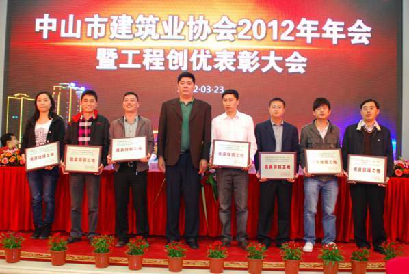 龍灣花園一期項目榮獲“中山市安全生產文明施工優良樣板工地”稱號 時間:2012-04-11 5352 龍灣花園一期項目榮獲“中山市安全生產文明施工優良樣板工地”稱號 2012年3月23日,中山市建筑業協會召開了“2012年年會暨工程創優表彰大會”。與會501家會員單位中,共有25個項目獲得了“中山市建設工程安全生產文明施工優良樣板工地”稱號,由珠海區域公司中山分公司施工的“龍灣花園一期”工程項目榜上有名。 珠海區域公司中山分公司總經理嚴正濤(右一)在表彰會現場領取獎牌