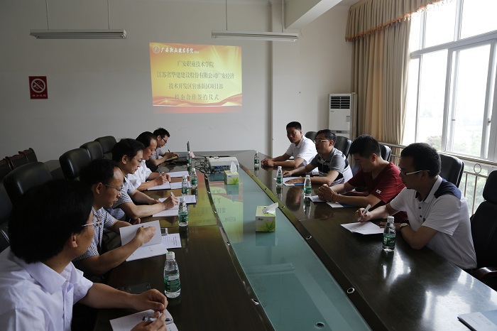 陳永龍院長介紹了廣安職業技術學院的教學發展情況,并對江蘇華建的關心和支持表示感謝,期待通過這次合作實現校企雙贏。嚴總重點介紹了江蘇華建近年來的發展業績和廣安官盛新區建設項目進展情況,并表示將用好校企合作這一平臺,在學生實習培訓、教師培養、課題研究等方面給予學院全方位支持。儀式最后,雙方代表共同在合作協議書上簽字,與會人員一同合影留念。