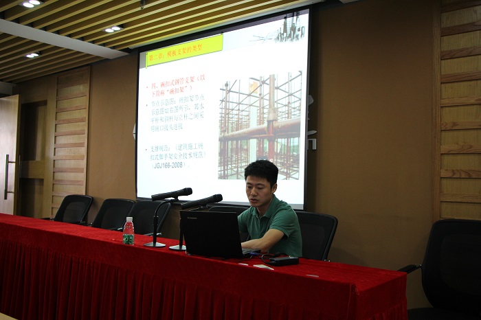 會(huì)上,安全設(shè)備處主任丁瑞華、副主任陳榮就腳手架和模板支架搭設(shè)具體細(xì)節(jié)實(shí)施、施工現(xiàn)場(chǎng)存在的問題等,以圖文并茂的形式展示了關(guān)鍵點(diǎn)與控制要領(lǐng),使培訓(xùn)人員對(duì)腳手架搭設(shè)和模板支架搭設(shè)安全控制點(diǎn)更加清晰明朗。盧總分享了北京綠色施工和公司魯班獎(jiǎng)項(xiàng)目考察學(xué)習(xí)的經(jīng)驗(yàn)感悟,就其中珠海公司可以借鑒學(xué)習(xí)的部分做了深入細(xì)致的講解,他激勵(lì)大家要以魯班精神打造華建的精品工程。