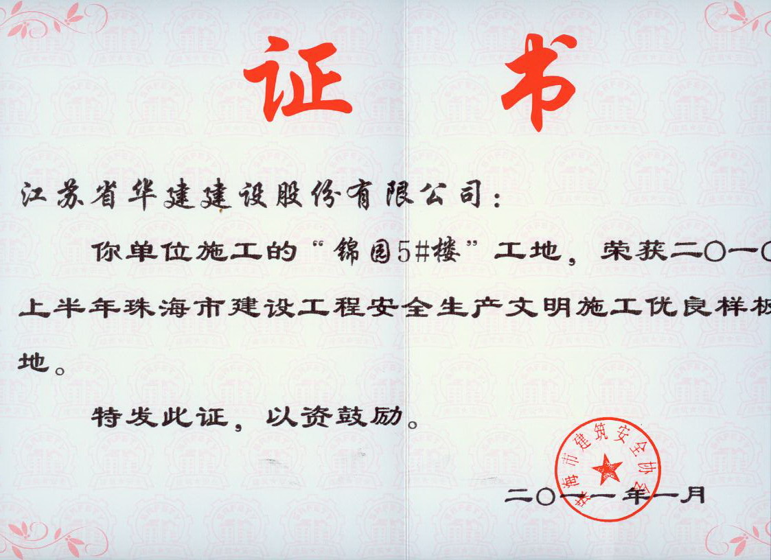 2010年錦園1#、2#、6#樓安全文明市樣板