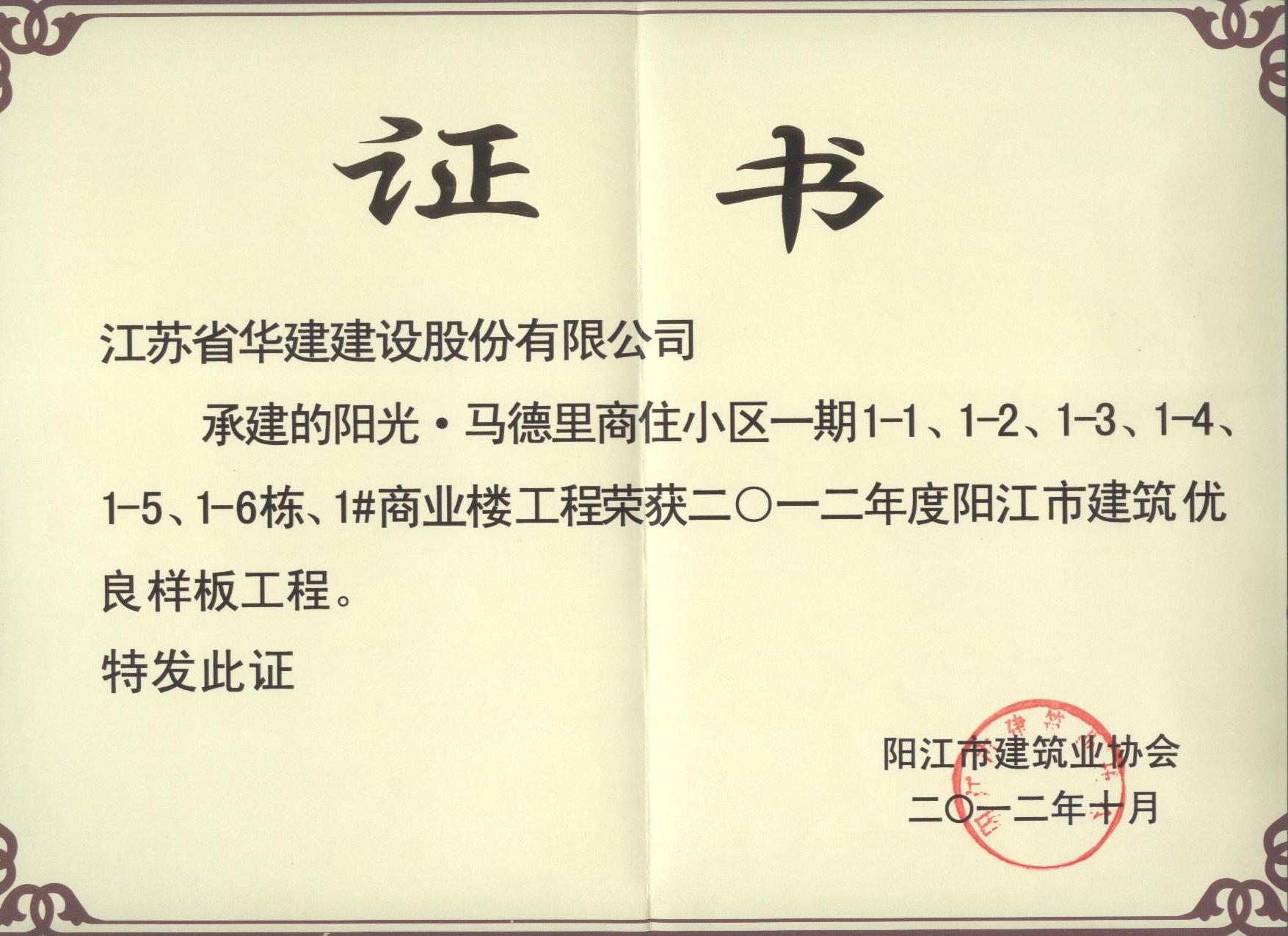 2012陽江陽光馬德里項(xiàng)目陽江市優(yōu)良樣板工程
