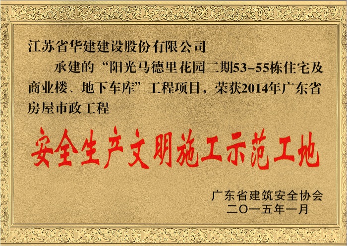 陽(yáng)光馬德里二期工程榮獲2014年廣東省AA級(jí)安全文明標(biāo)準(zhǔn)化工地