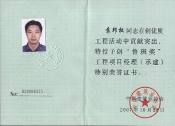 他努力踐行科學(xué)發(fā)展觀,狠抓施工技術(shù)管理,擔(dān)任項(xiàng)目經(jīng)理多年,負(fù)責(zé)施工的工程屢創(chuàng)佳績(jī),屢獲殊榮,他負(fù)責(zé)施工的項(xiàng)目達(dá)35項(xiàng)之多,建筑面積97萬(wàn)m2,其中18層以上31幢。工程質(zhì)量幢幢優(yōu)良,8項(xiàng)工程獲江蘇省優(yōu),1項(xiàng)獲廣東省優(yōu)工程,6項(xiàng)獲深圳市優(yōu),兩項(xiàng)獲深圳市最高質(zhì)量榮譽(yù)“金牛獎(jiǎng)”,兩項(xiàng)問鼎中國(guó)建設(shè)工程最高質(zhì)量榮譽(yù)魯班獎(jiǎng)。袁邦權(quán)項(xiàng)目部業(yè)成為業(yè)內(nèi)有影響的锃亮品牌,先后被授予公司雙文明先進(jìn)集體、公司思想政治工作先進(jìn)單位,“江蘇省青年文明號(hào)”、“全國(guó)青年文明號(hào)”等光榮稱號(hào)。