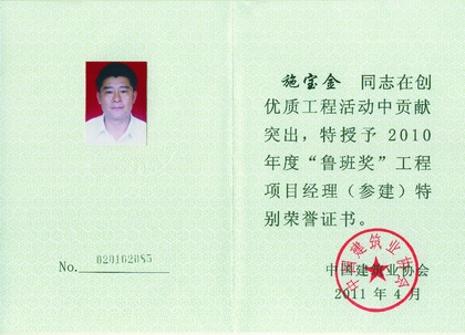施寶金,高級工程師,現(xiàn)任深圳公司七處二工區(qū)常務副主任、項目經理。1996年到深圳參加工作,參與過國際商會中心、榮超經貿中心、江勝大廈、綠景紀元大廈等重點項目施工,獲“深圳市建筑業(yè)企業(yè)優(yōu)秀項目經理”稱號,被授予“創(chuàng)魯班獎工程項目經理特別榮譽證書”。