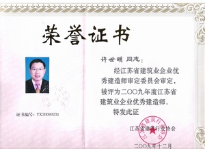 2003年,許世明所在的“當代城市家園外墻保溫工程”質量管理小組被江蘇省建設廳授予江蘇省工程建設優秀質量管理小組;當代城市家園、中科院與清華大學(清楓華景園)、鳳凰城三期項目獲江蘇省建筑業新技術應用示范工程;他本人參加編制的《聚苯保溫板與混凝土現澆復合外墻施工工法》被國家建設部批準為2006年度國家級施工工法,在全國建筑行業中推廣;該同志編制的《插接栓式大模內置現澆外墻外保溫施工工法》被江蘇省建管局批準為2003年度江蘇省級施工工法,填補了省內空白,在全省建筑系統中推廣。